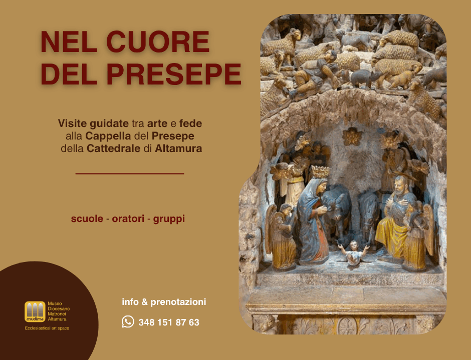 Dove la pietra racconta la Natività! “Nel cuore del Presepe” è una visita guidata nella suggestiva Cappella del Presepe della Cattedrale di Altamura. Un’esperienza educativa e […]